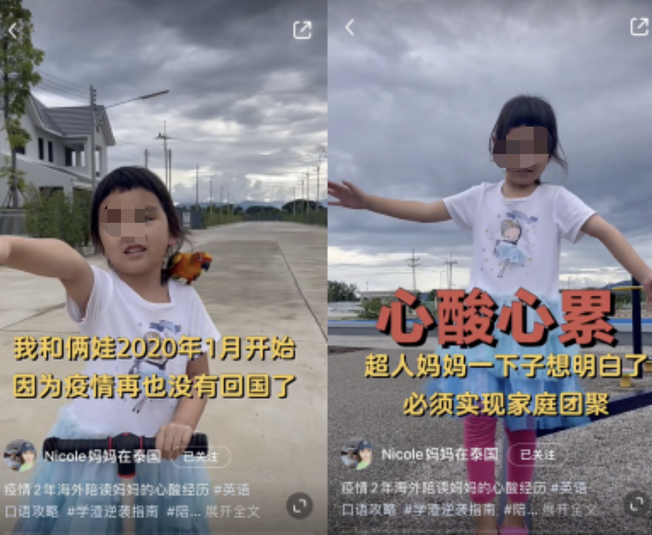 @Nicole妈妈 在泰国在最近就发了一则视频,诉说自己从2019年8月带着当时23个月大的女儿来到曼谷,结果因为疫情,独自带娃近3年,直到最近才见到丈夫。