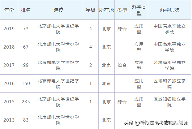 按金苹果版大学排行榜看,北京邮电大学世纪学院2017年全国排名第146位。2016年全国排名第96位。2015年全国排名第79位;2014年全国排名第71位。