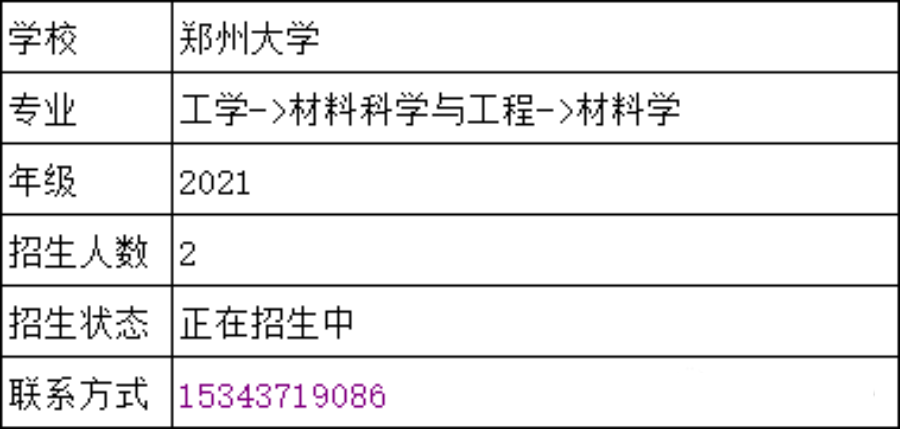 * 学制以及专业:三年制硕士,材料学
