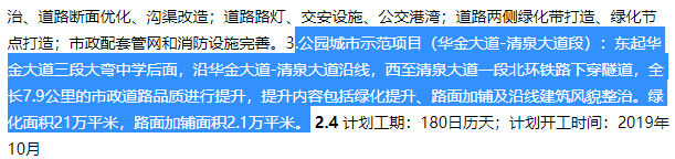此项目东起华金大道三段大弯中学后面,沿华金大道-清泉大道沿线,西至清泉大道一段北环铁路下穿隧道,全长7.9公里,计划开工时间10月。