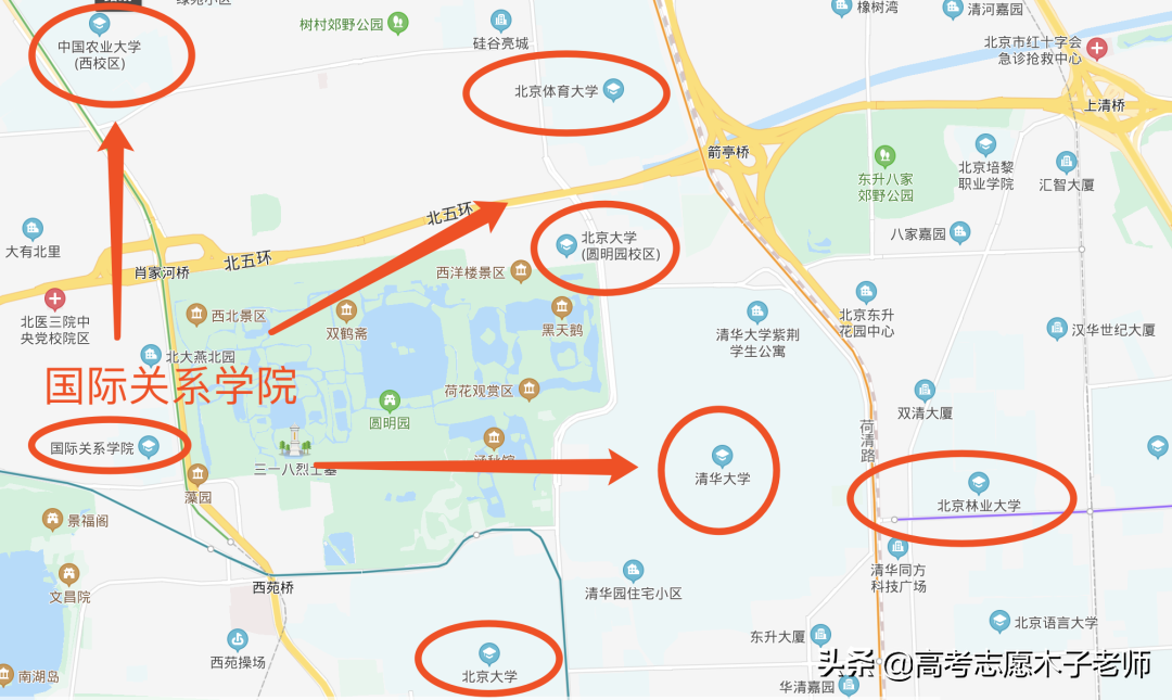 国际关系学院位于北京海淀区,同时也是北京高校集散地,是北京教育的核心地带,周围还有北大、清华、中国农业大学、北京林业大学、北京体育大学等。