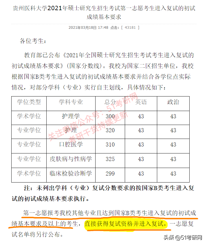 第一志愿报考我校其他专业且达到国家B类考生进入复试的初试成绩基本要求及以上的考生,直接获得复试资格并进入复试。一志愿复试名单将另行公布。