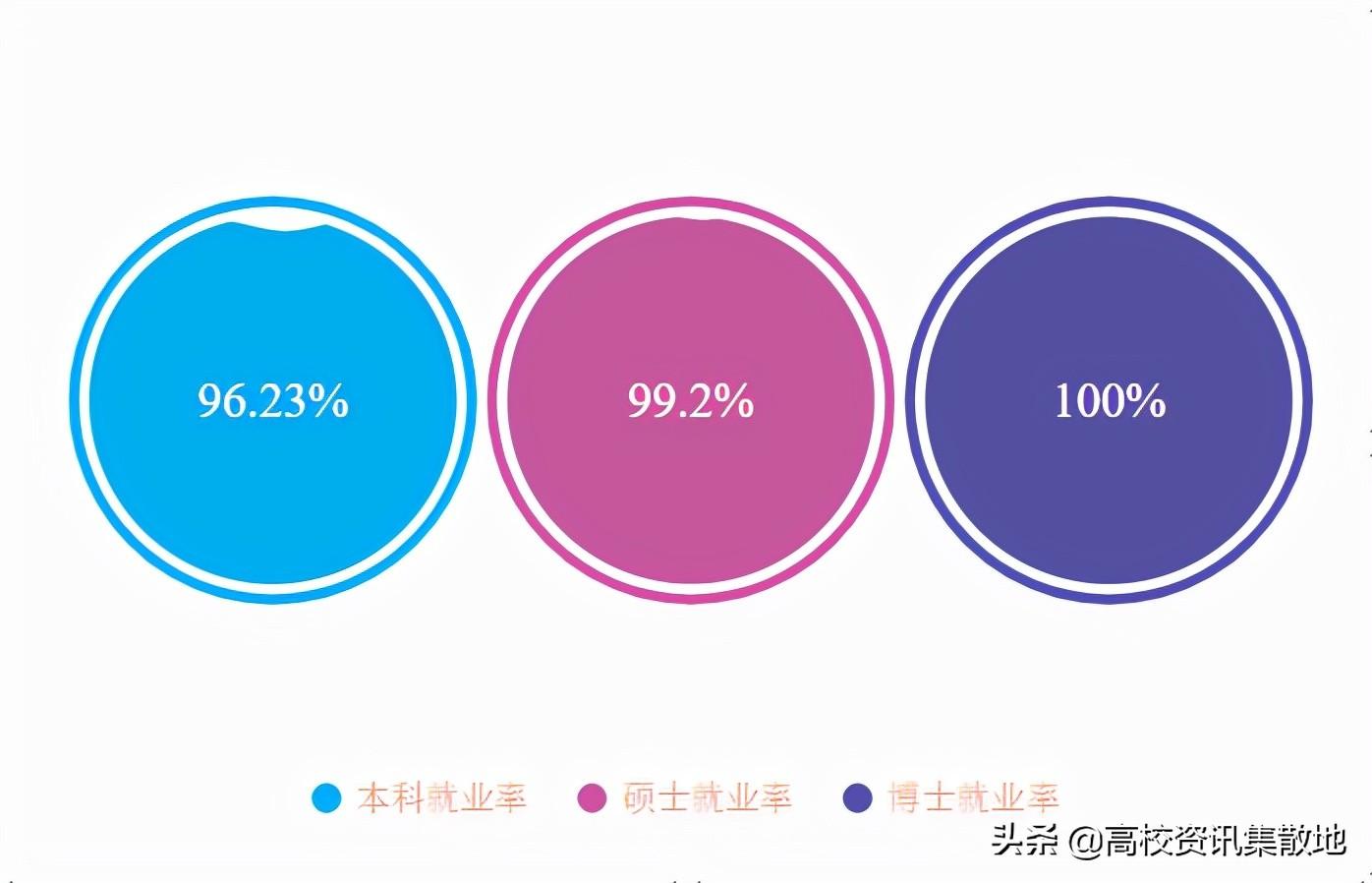 对2019年不同学历的毕业生就业情况进行统计,南航整体就业率高,本科就业率96.23%、硕士就业率99.20%、博士就业率100%。