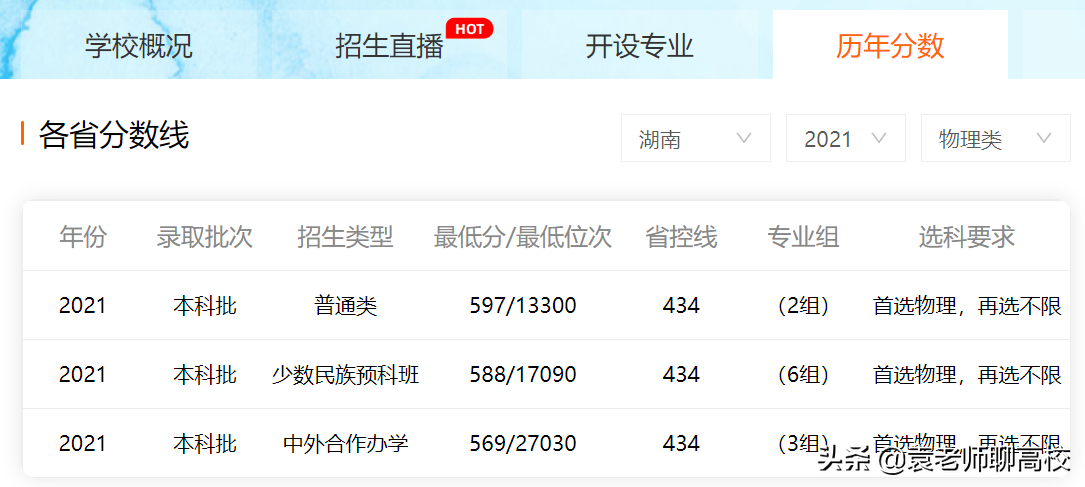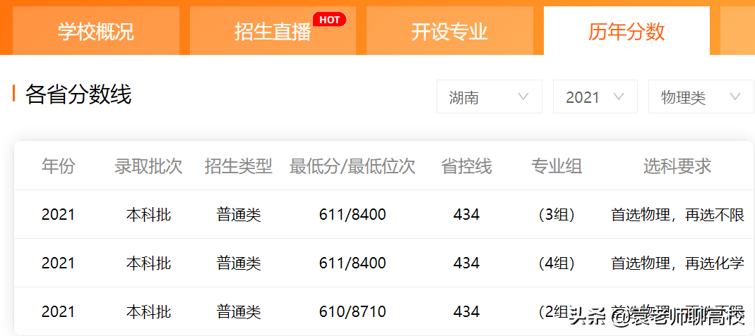 以湖南省2021年高考录取为例,北京科技大学普通物理类最低分为610分,普通历史类最低分为597分!