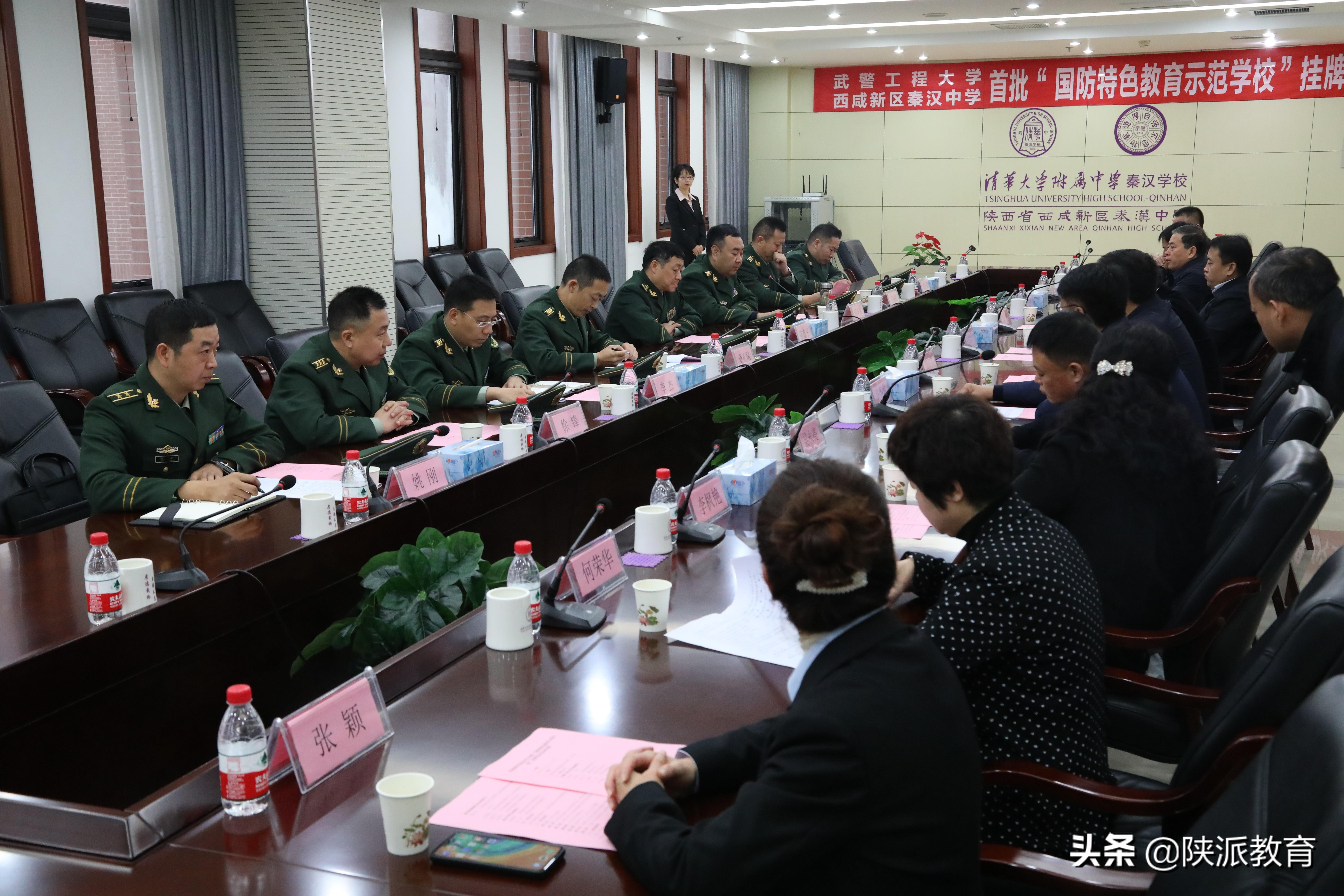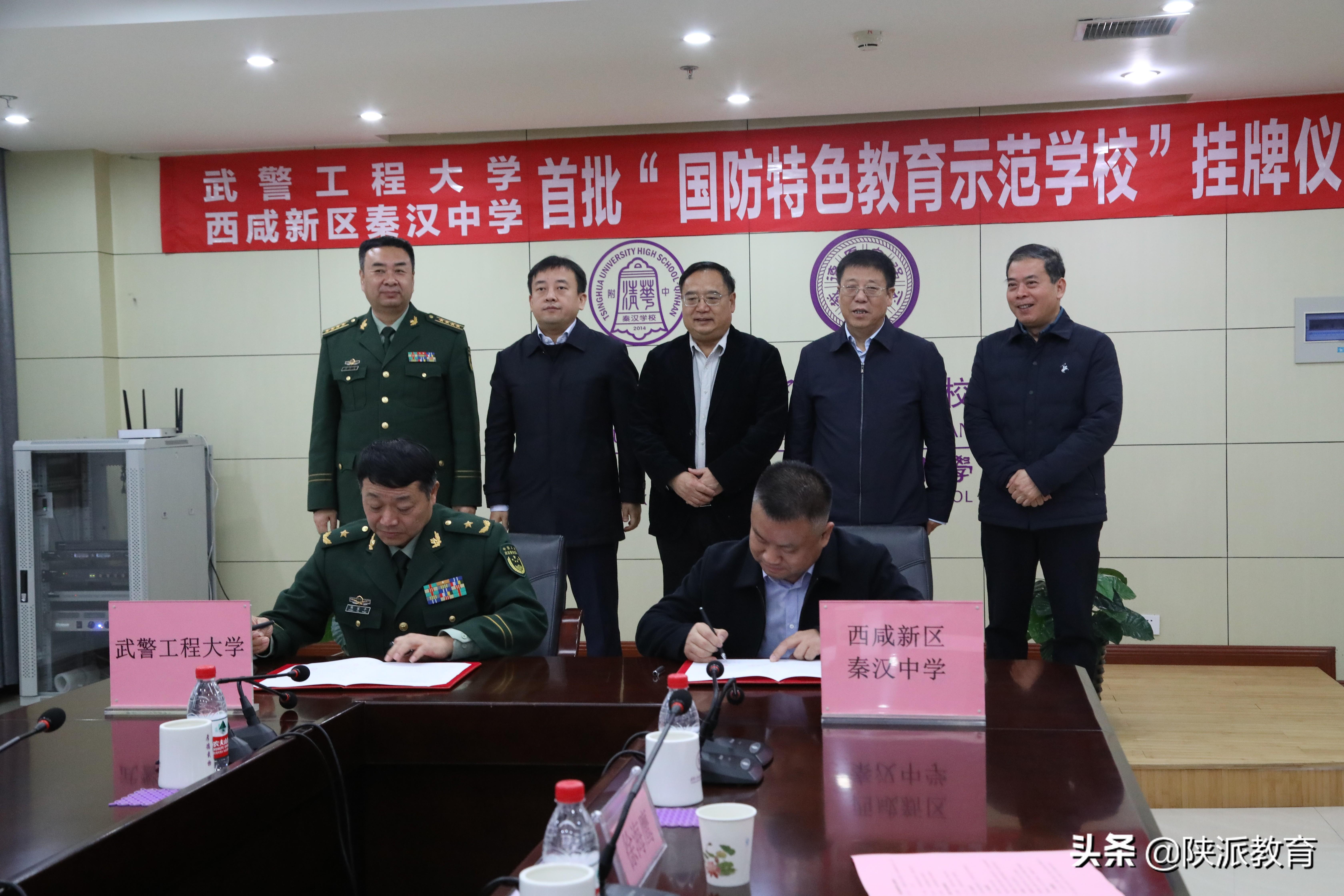 武警工程大学全称是中国人民武装警察部队工程大学,是武警部队唯一具有博士学位授予权,并列入“十三五”军队重点院校的专业类高等教育院校;秦汉中学是清华附中在北京以外承办的第一所高中,依托先进教育理念,正在积极创建陕西省师范高中。武警工程大学在秦汉中学成立第一个“国防特色教育示范学校”,是强强联合,将开创新区国防特色教育发展新局面,谱写新区教育事业发展新篇章。