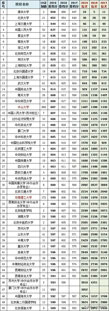 表格说明:2019投档分红色,表示位次前移。