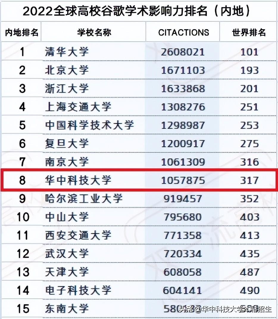 在2022全球大学谷歌学术影响力排名中位居中国内地高校第8名,世界排名第317名。