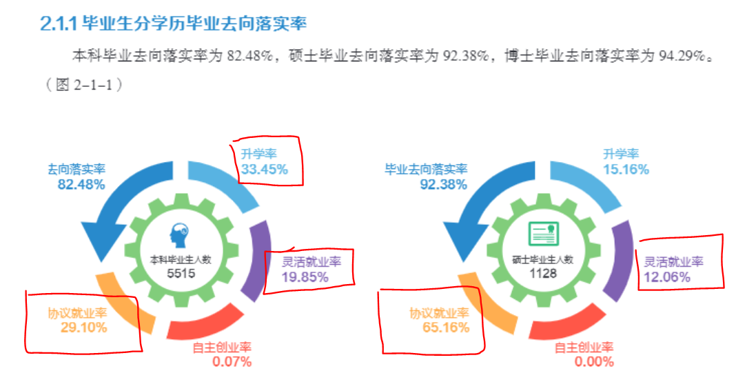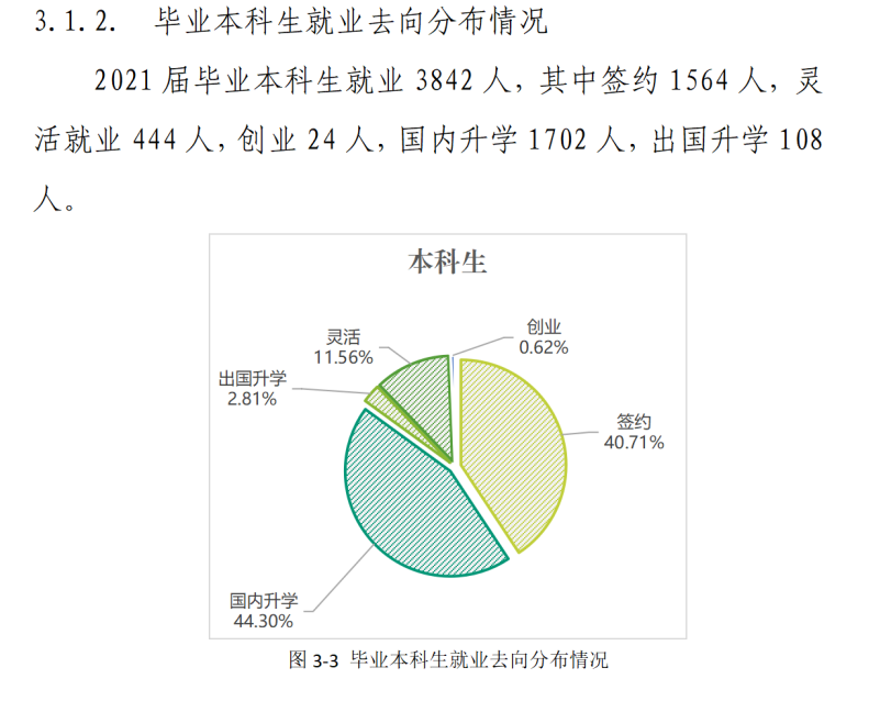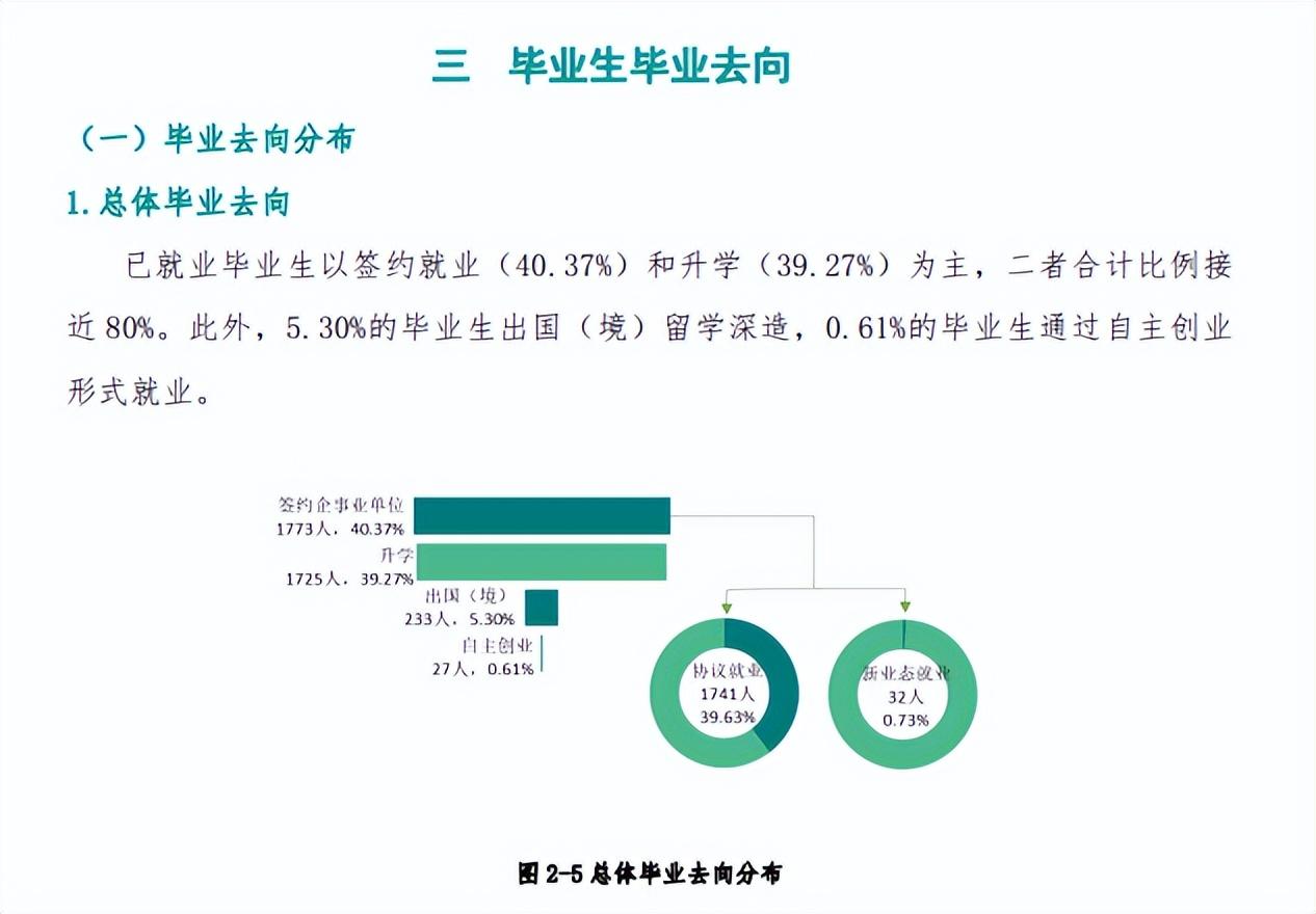 毕业去向:本科升学率:33.45%,保研率(8%左右)。就业率 :29%+19.85%(灵活就业)。