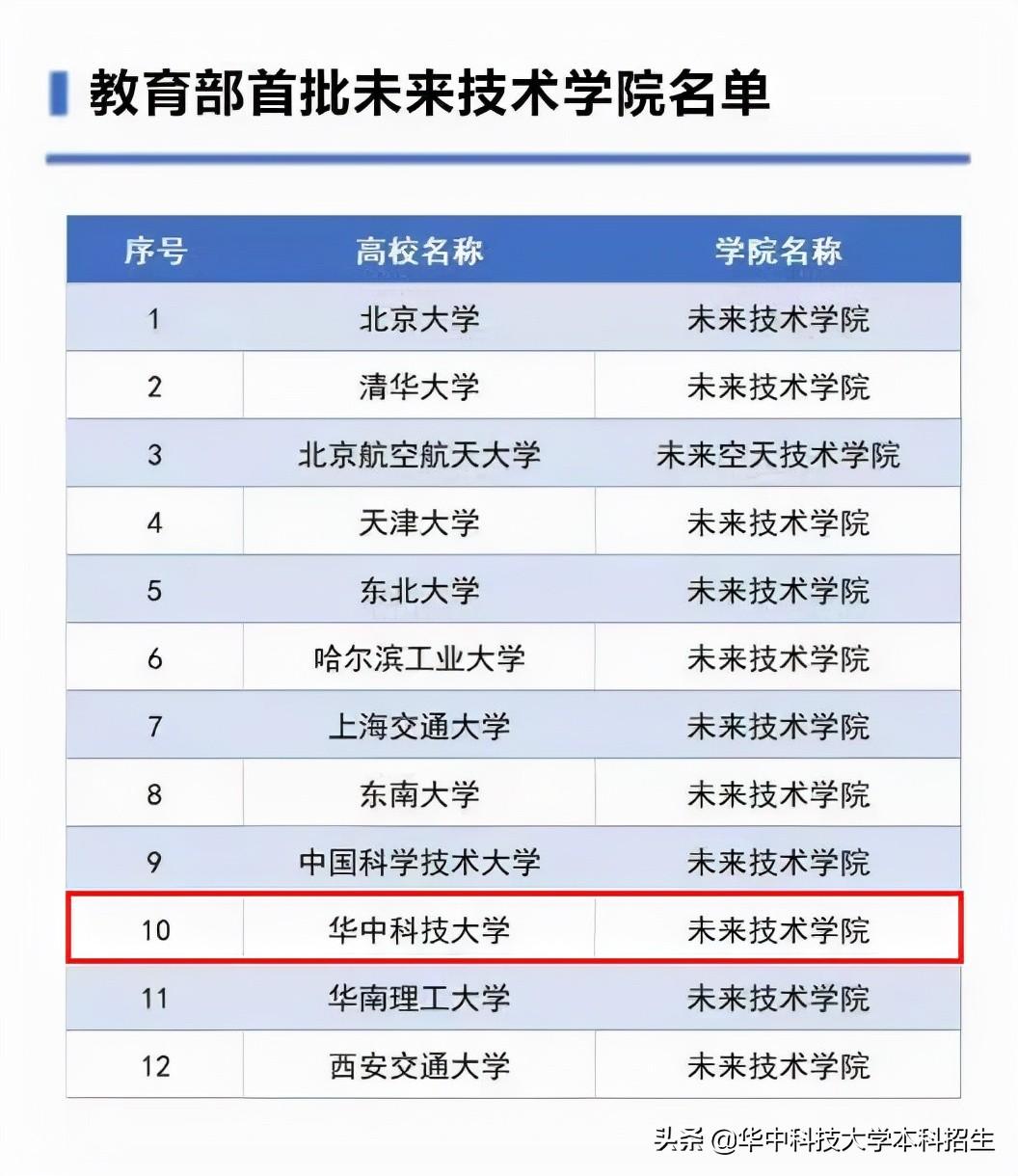 今年5月教育部发布通知,确定并公布了12所首批未来技术学院名单,华中科技大学名列其中,成为全国首批未来技术学院建设单位,华中科技大学未来技术学院也是华中地区唯一一家未来技术学院。