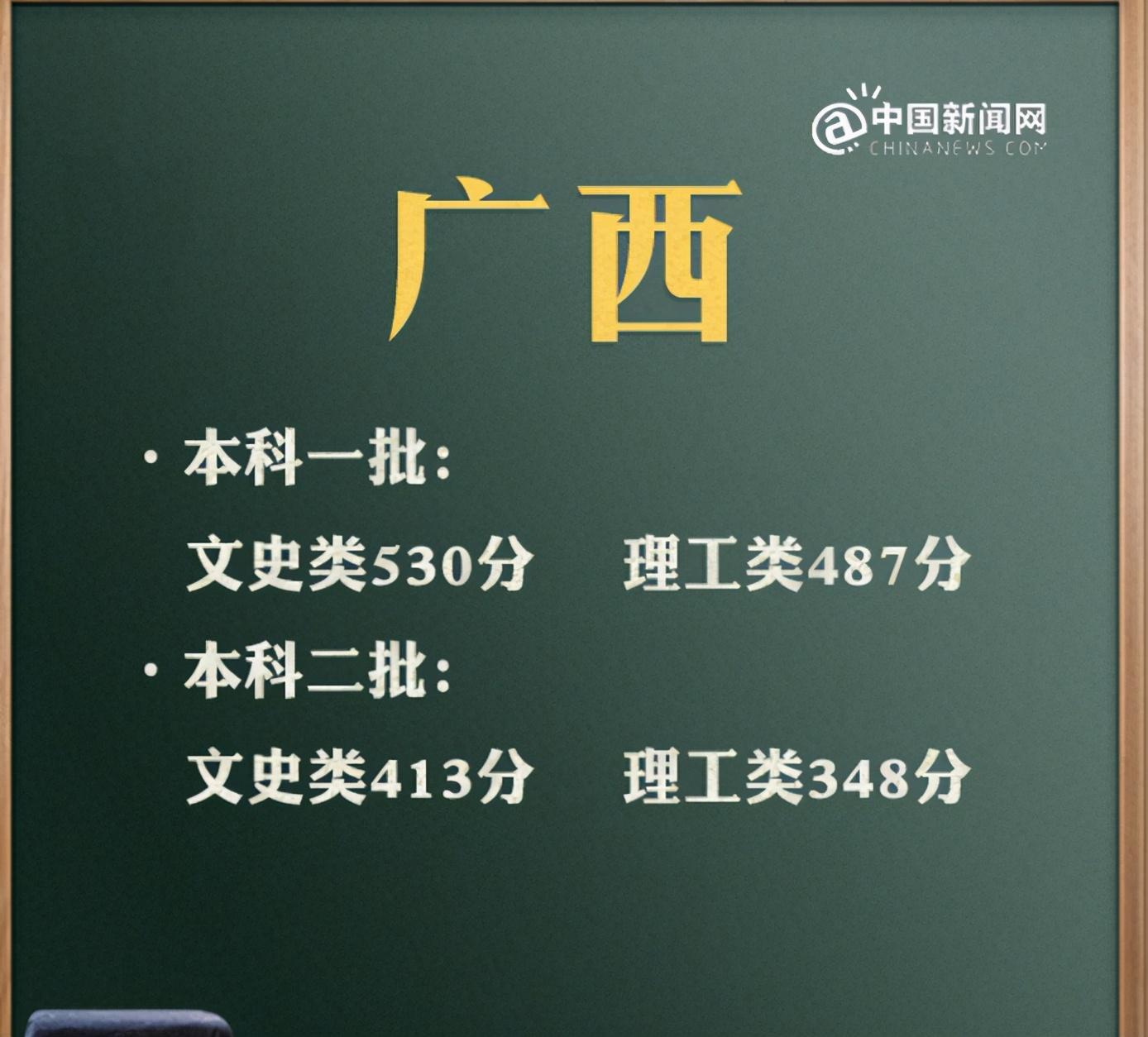 广西相对来说会好一些,文史类本科线413分,理工科348分,但是一本线非常高,文科到达了560分。