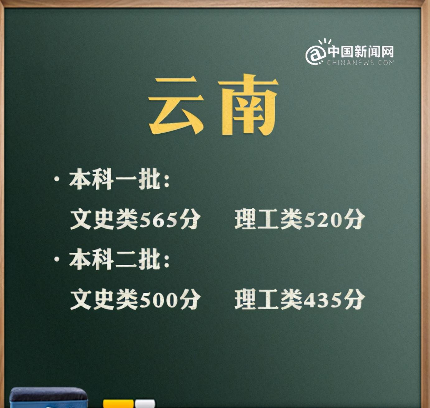 首先是云南省,与去年相差不大,文科二本线500分,理科二本线435分,理科线较与去年有所下降。