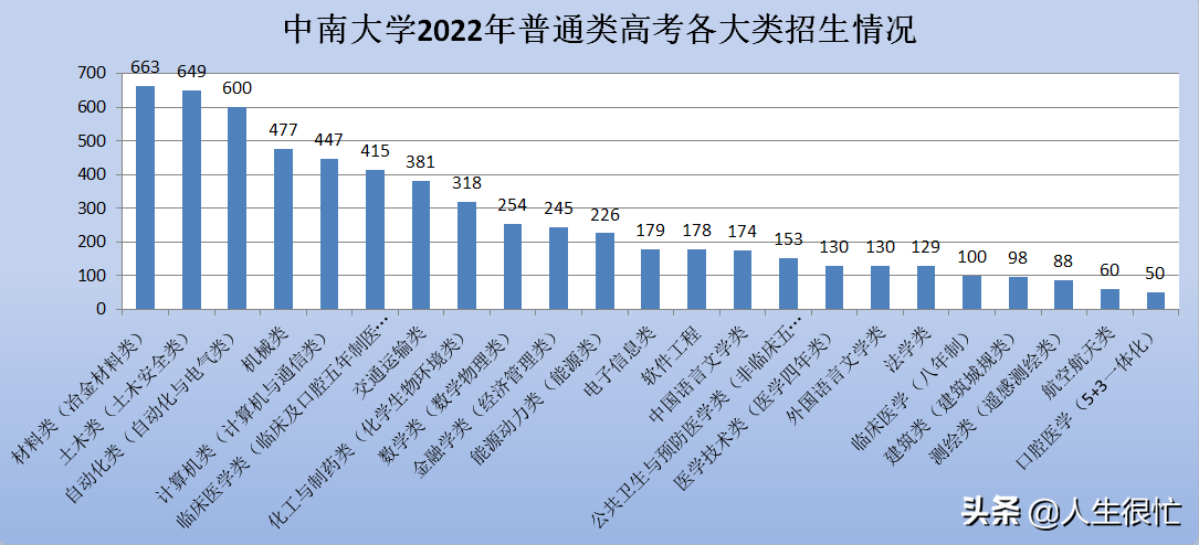 那么,中南大学2022年各大类招生情况如何?