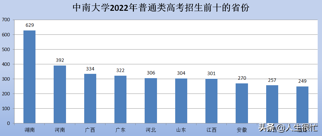 那么,中南大学2022年招生前三的省份都有哪些省市,各招生多少人?