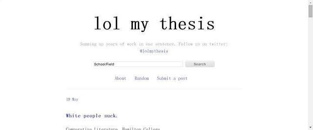 LolMyThesis是个由哈佛学院学生创办的论文分享网站,该网站原来是一些本科生及研究生记录自己撰写论文时遇到的压力以及写论文中遇到的一些琐碎事情,但是随着越来越多人上传自己的论文,你已经能在这里查到不少有用的资料,而且所有的论文都支持在线阅读,免费使用。