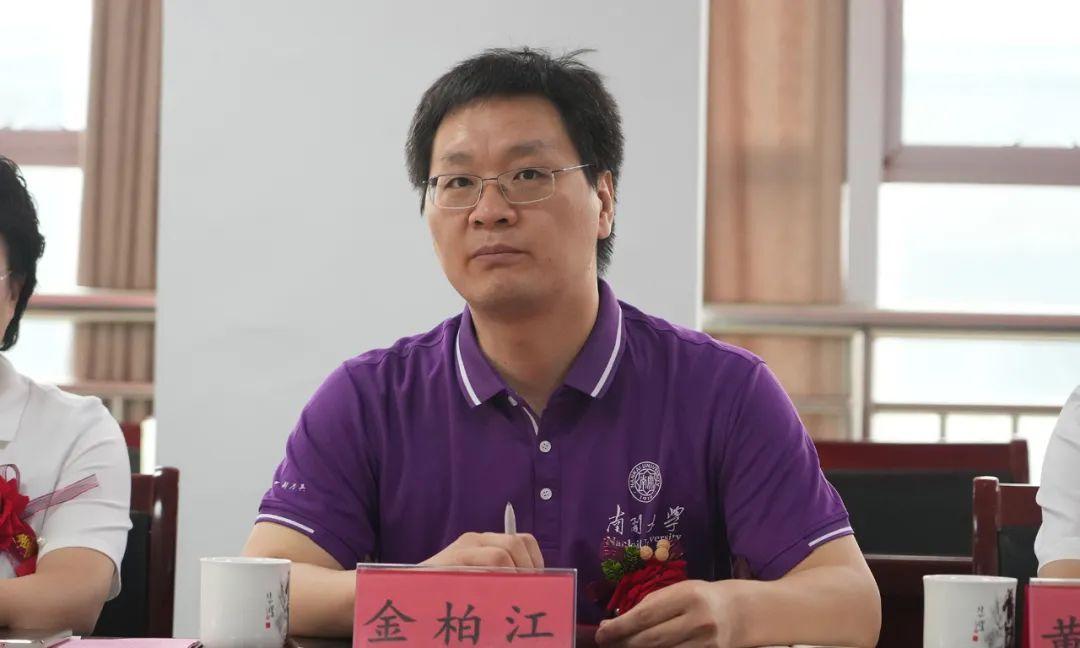 南开大学招生办公室主任金柏江代表南开大学将“优秀生源基地校”牌匾授予沙城中学,县教科局党组成员、沙城中学党委书记刘伟东代表学校接牌,并作表态发言。