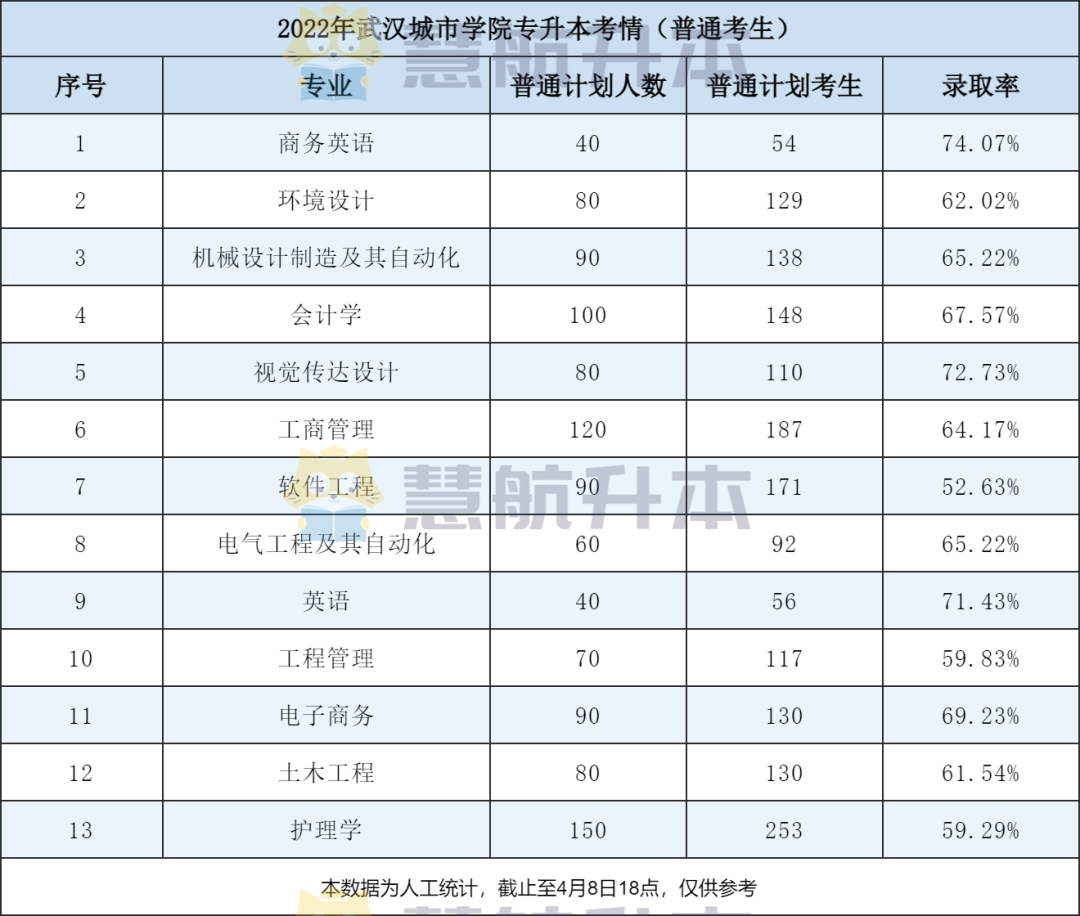 需要说一下的是,武汉城市学院的很多专业,专升本都有招生哦,并且录取率还不错。