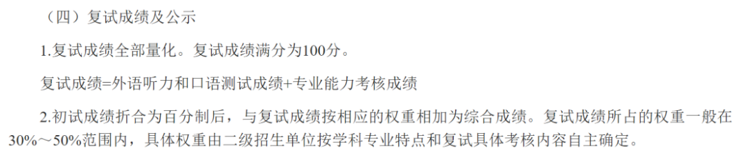 综合成绩=初试成绩(百分制)x70%+复试成绩(百分制)x30%