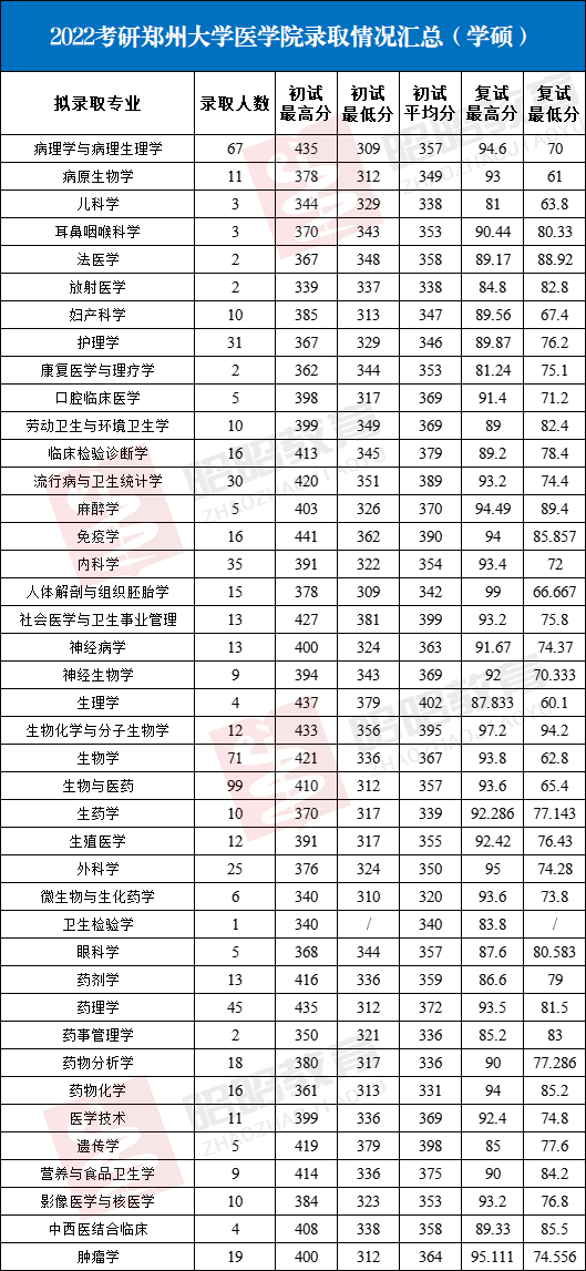 专硕:2022年郑州大学的临床专硕真是惊到小昭了,初试基本要考到370分了,而且没有冷门专业,所有专业的分数都不低,想捡漏搏一搏的同学放弃郑州大学吧,尤其是想考一附院的同学,要往380分努力了,毕竟那么多专家都想跳槽到一附院。