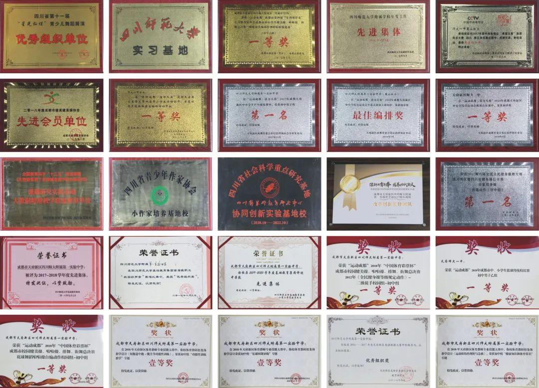 学生近500人分获青少年科创大赛市一、二、三等奖;300余人分获语言类、艺术类、体育类大赛省市一、二、三等奖;近100人获市区“三好”“四好”“优干”称号;代表区参加省市啦啦操、皮划艇比赛获特等奖3项,一等奖5项。学校先后荣获“国家基础教育实验中心外语实验学校”、“全国青少年科学实验活动示范学校”、“全国民办先进学校”、“教育部‘国培计划’中学骨干教师培训基地”、“小作家培养基地校”、“全国科研先进单位”、“成都十佳魅力校园”等殊荣。