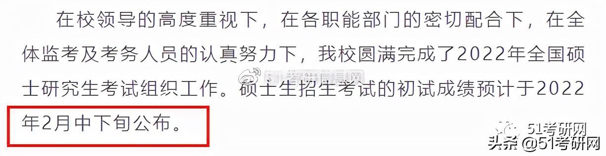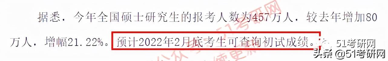 2022年全国硕士研究生招生考试(初试)成绩预计于2022年2月下旬公布。