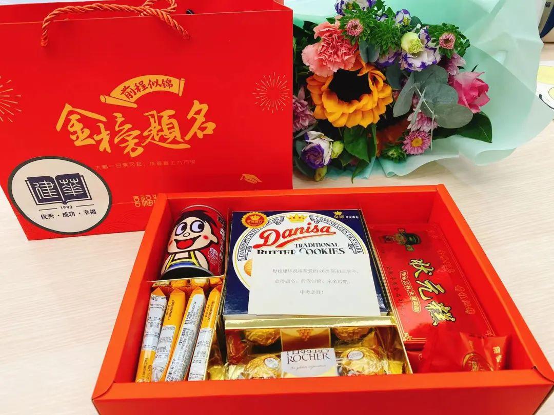 2022年6月22日,北京市建华实验学校中学三部举行了主题为“凌青云,啸九天,征程踏,热血燃!”的送考活动,郝光燕副校长为学生一一送上向日葵并合影留念,祝福初三年级的同学们中考顺利,一举夺“葵”!