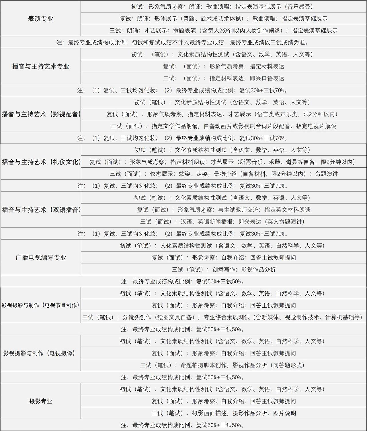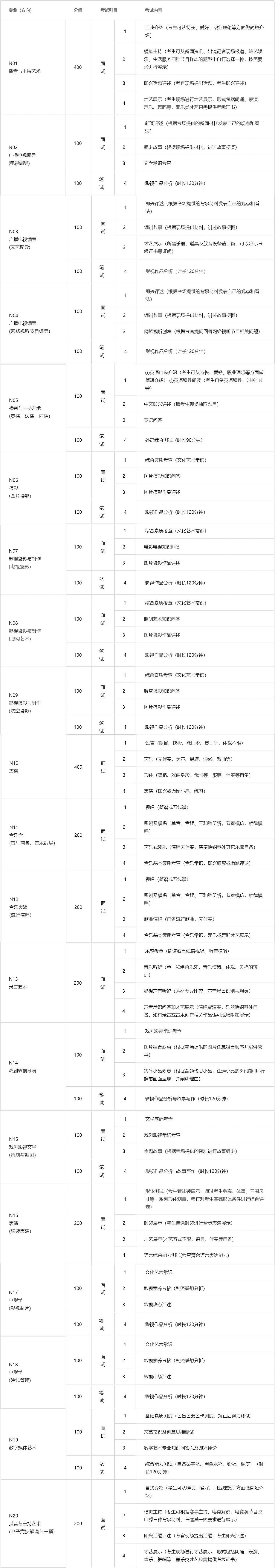 中国传媒大学南广学院2020年共有艺术类招生专业(方向)27个,其中需要参加校考的专业如下(附校考考试内容)。