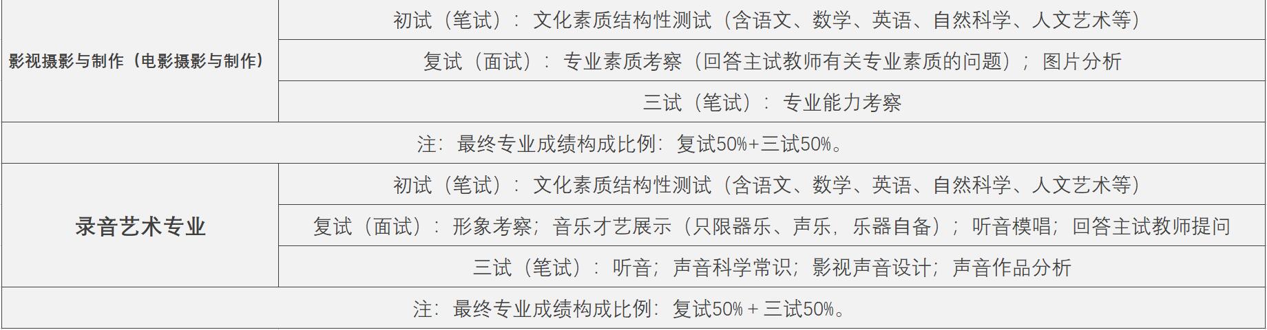 戏剧影视文学及数字媒体艺术专业成绩承认考生相应省统考成绩。