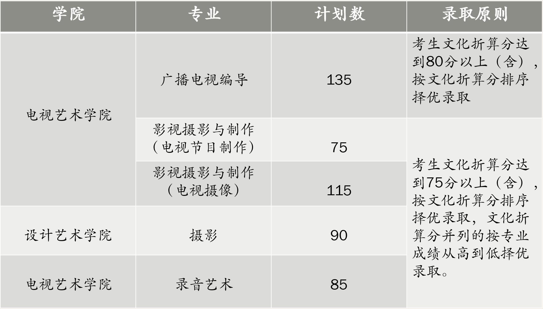 中国传媒大学南广学院按照省统考成绩录取的原则共有以下两种。
