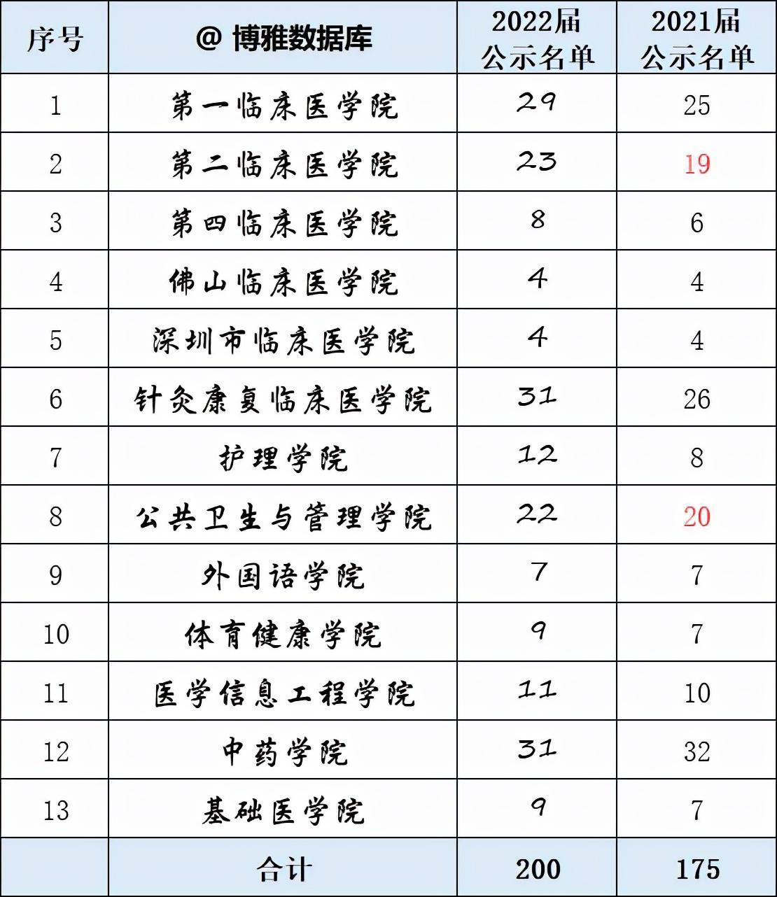 根据广州中医药大学教务处公示: 2022届拟推荐优秀本科毕业生推免生200名。