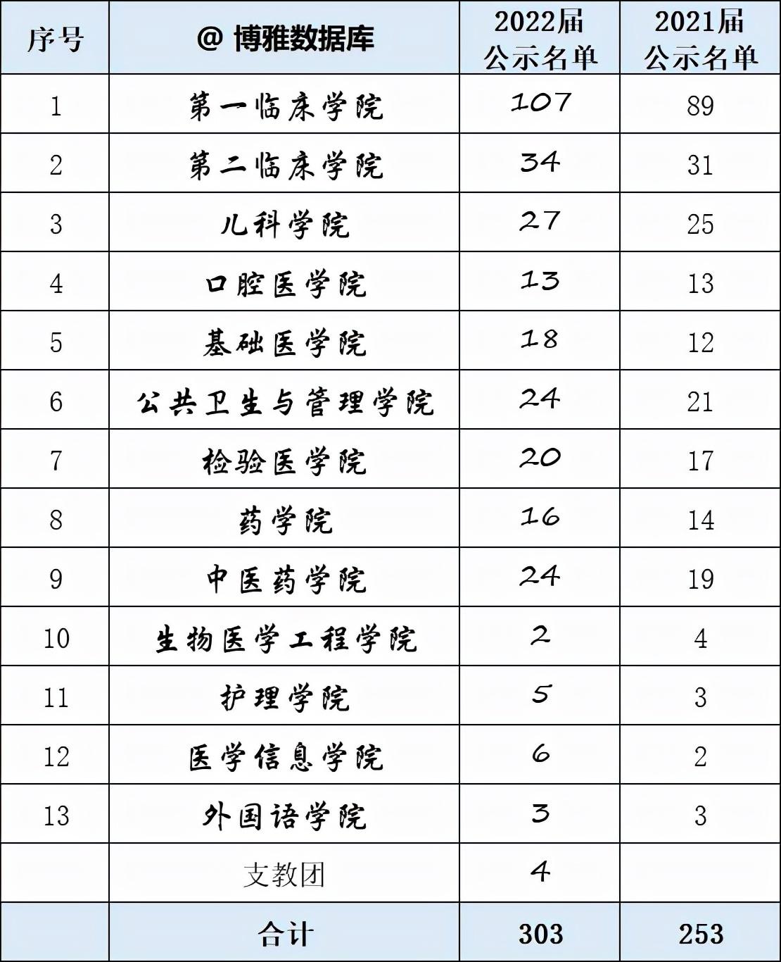 根据重庆医科大学教务处公示:2022届共计299名优秀应届本科毕业生获得推荐免试攻读硕士学位研究生推荐资格,去除150名长学制基数,保研率8.38%。