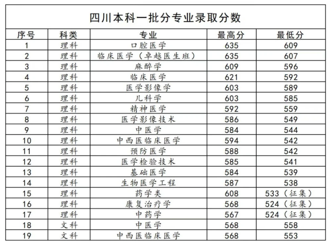 而口腔医学依旧鹤立鸡群,最低录取分数线635分,依旧保持着“亚洲第一”的姿态。