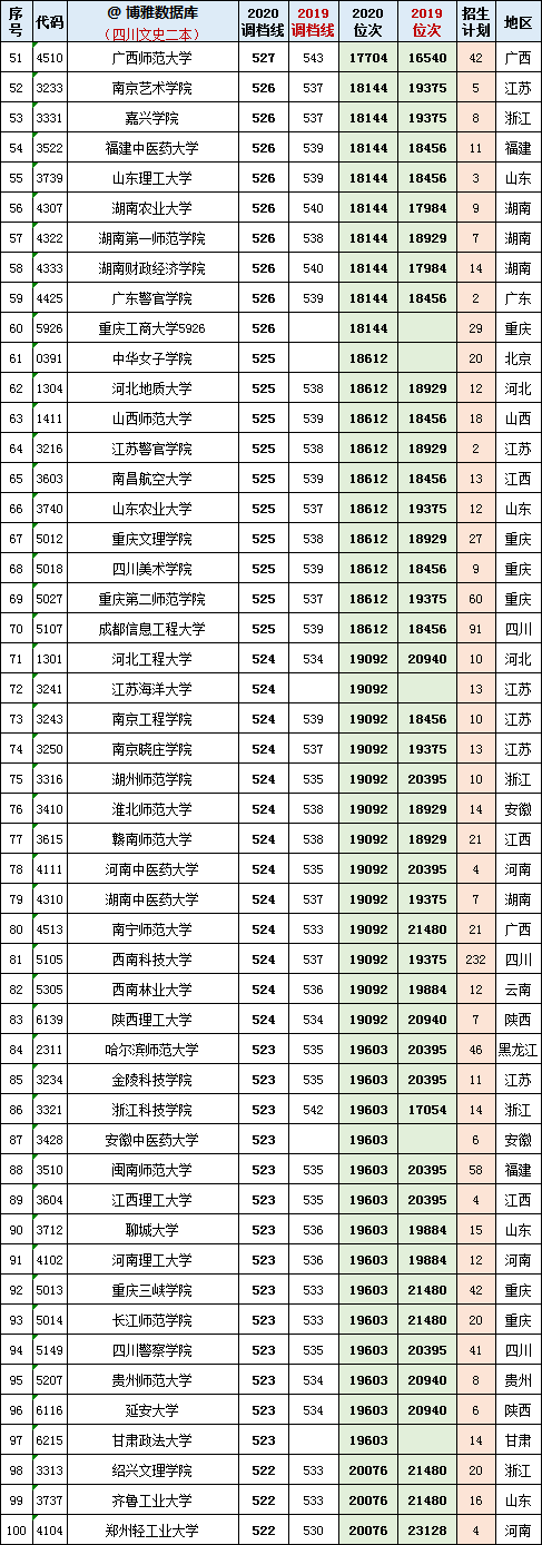 今天给各位四川省内的同学整理了近两年来(2019-2020),四川省内二本文史类院校各校的最低投档分及位次表汇总。四川今年的高考还是和去年一样,区分文理科,所以,对于各位四川高考生们来说,近两年的投档数据,在填报志愿的时候,是最为重要参考数据。——务必收藏好本文哦!