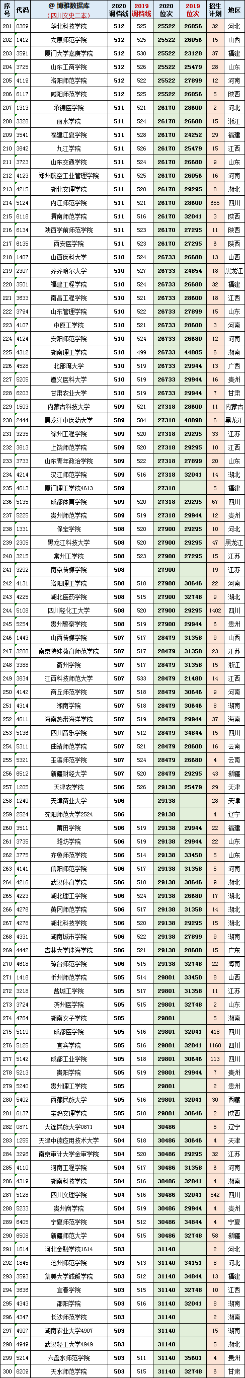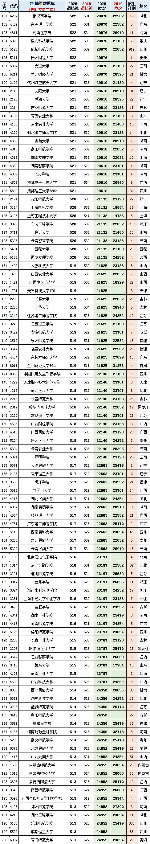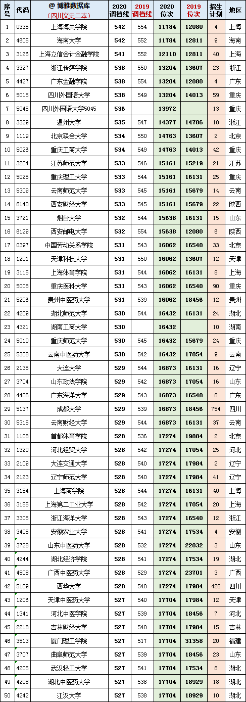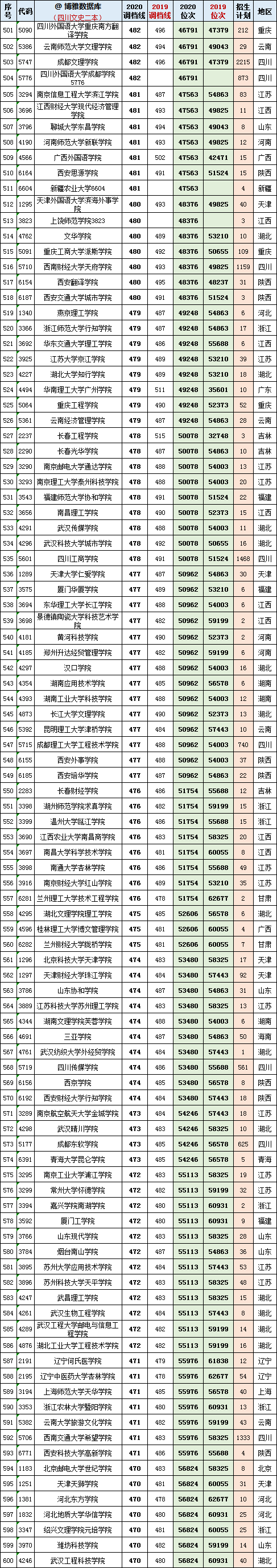 下表为各位四川省内2021届高三毕业班同学们整理了:近两年(2019-2020年)四川省内普通高校在川招生本科二批(文史)院校录取调档线及位次情况。