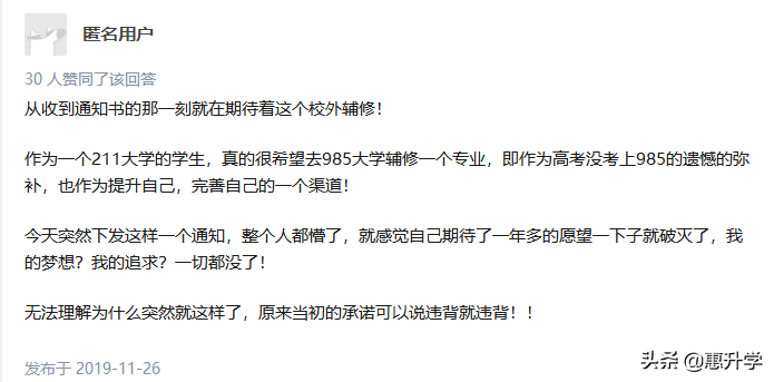结语:“辅修双学位的门槛需要提高,双学位的授予也理应优化。现在暂停招生可能是一次调整,将招生标准、管理标准、学位授予标准调整到符合初衷的位置。”惠升学还是很期待再次重启招生的~