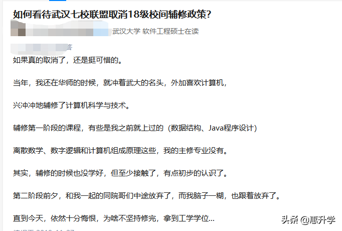 惠升学认为这个才是最主要的原因,均衡配置本专业与辅修专业的时间才是最重要的,不能顾此失彼。