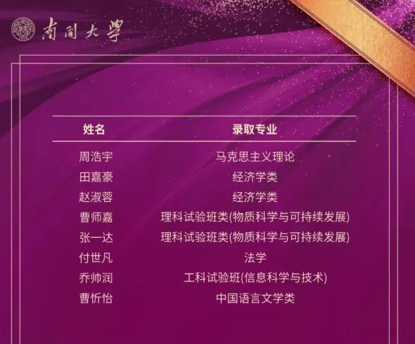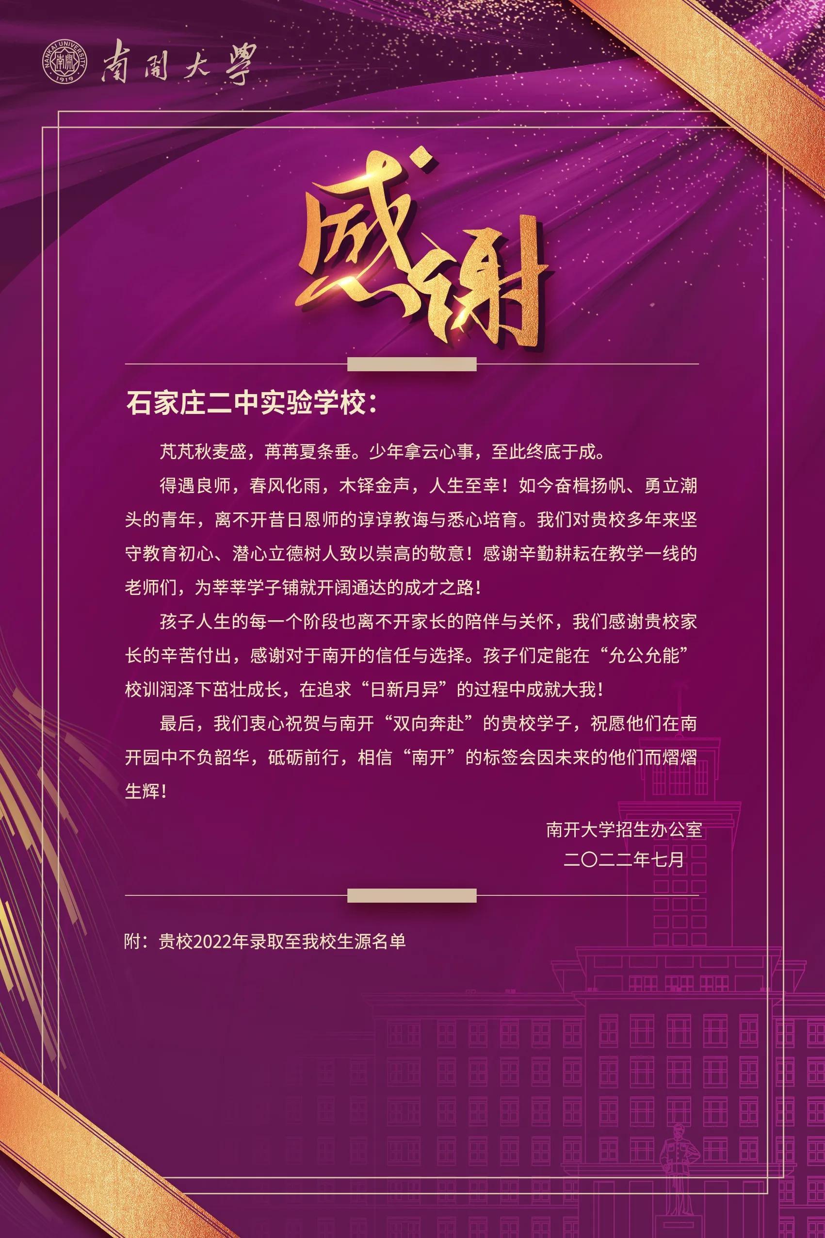 3.石家庄第二中学:共十名考生,被南开大学录取。
