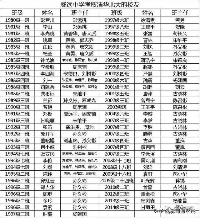 威远中学考取清华北大的校友