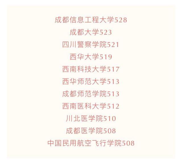 整体来看,2021年省内高校在川本科二批次调档线,仅3所高校调档线超过(等于)一本线(521分),分别是成都信息工程大学(528)、成都大学(523)、四川警察学院(521),踩线(430分)可上的高校也只有4所,分别是吉利学院、绵阳城市学院、成都理工大学工程技术学院、成都银杏酒店管理学院。