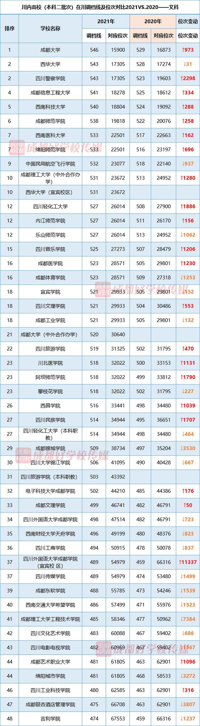 再说文科,省内高校在川调档线及位次有升有降,且升降位次变动不大,整体较为稳定。
