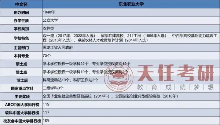 东北农业大学,是国家“双一流”建设高校、国家首批“211工程”建设高校,黑龙江省人民政府与中华人民共和国农业部共建高校,入选国家中西部高校基础能力建设工程、卓越农林人才教育培养计划项目试点、高等学校创新能力提升计划,是全国首批博士、硕士学位授予单位,黑龙江省重点建设的省属特色高水平大学,“援疆学科建设计划”,首批高等学校科技成果转化和技术转移基地。