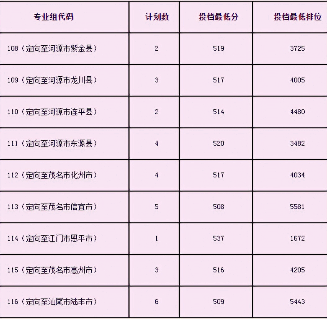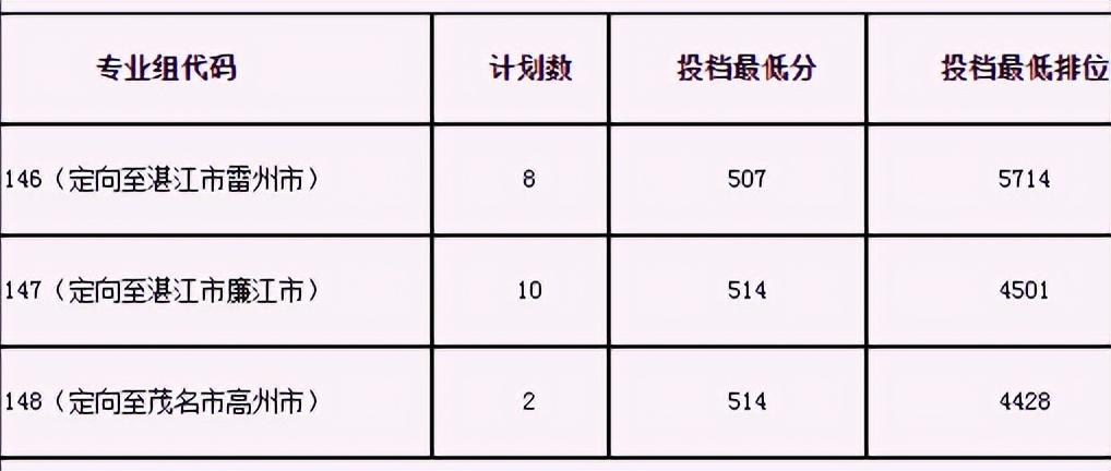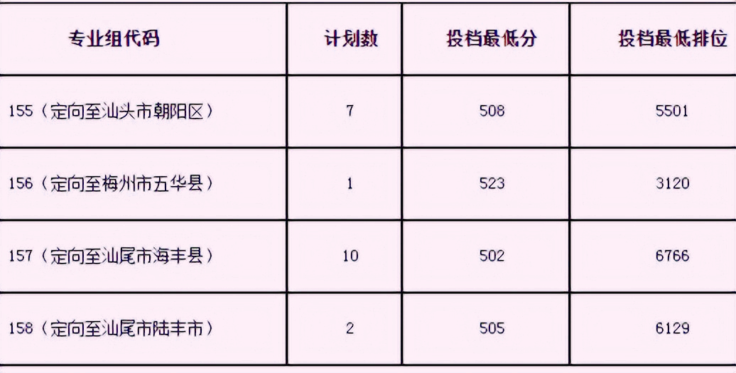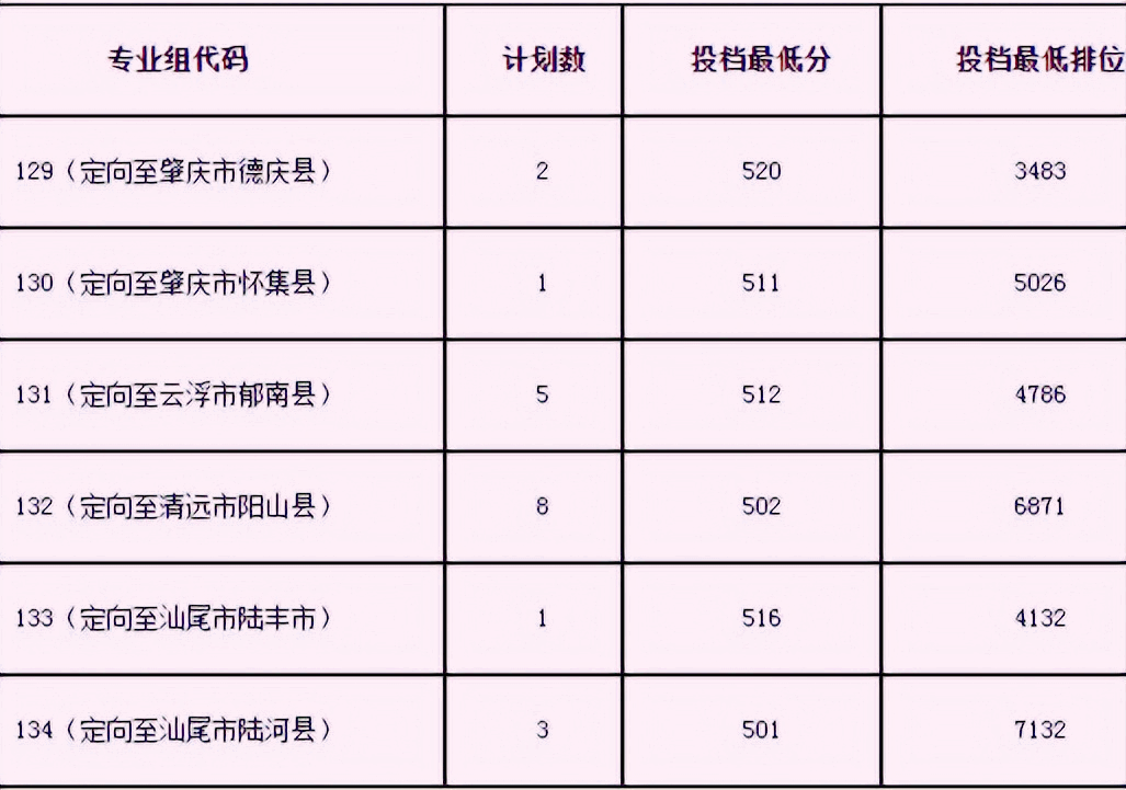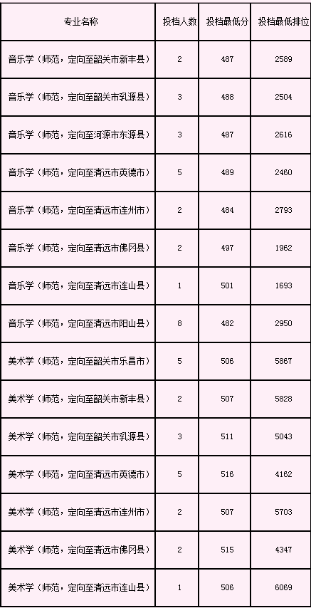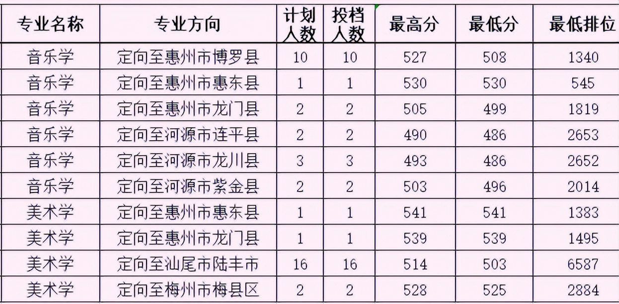 美术类专业教师专项仅面向广东省招生,2022年具体录取最低分数线及定向地区见下表: