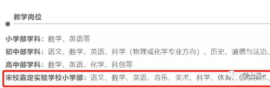 我们注意到教师招聘也已经开始了,在宋庆龄学校12月发布的《2022年上海宋庆龄学校教师招聘公告》里,就包含宋校嘉定实验学校小学部: