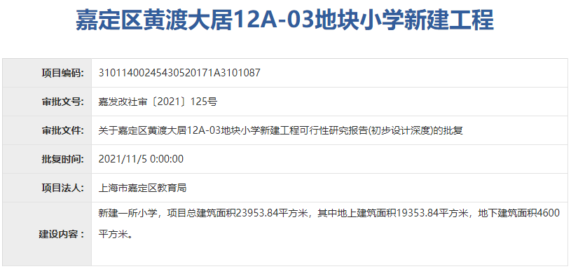 建设内容:新建一所小学,项目总建筑面积23953.84平方米,其中地上建筑面积19353.84平方米,地下建筑面积4600平方米。
