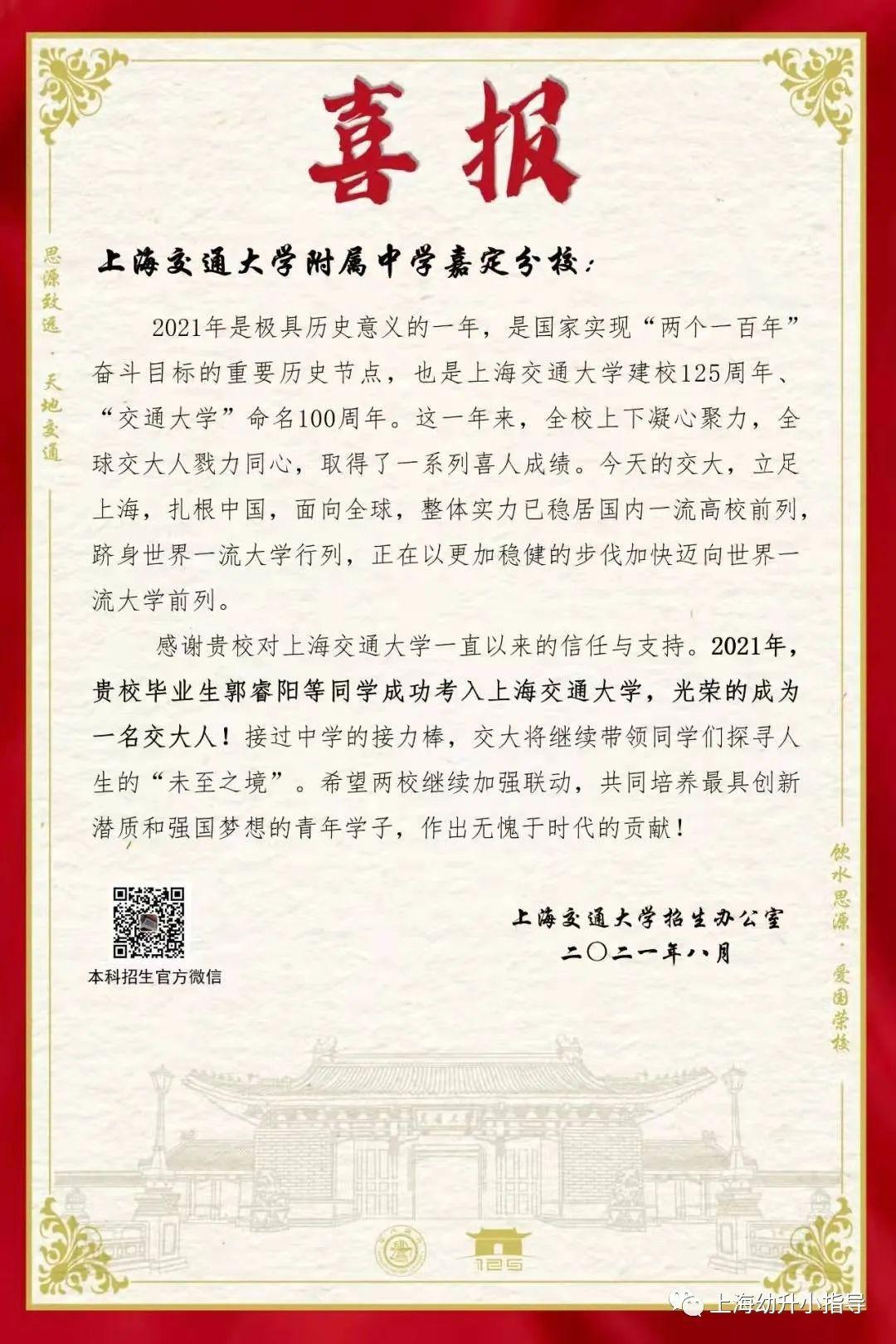 就在今年,交附嘉定有52人进入交大,相较于2020年的37人进入交大的成绩来说又有了进步!虽然人数上与本部相比并不算多,但同样作为交大嫡系学校,交附嘉定也是上交重要的生源学校之一。