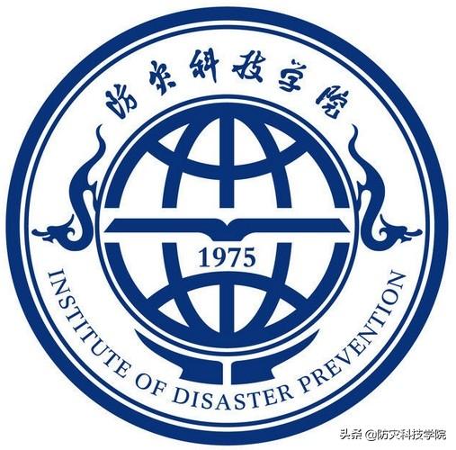 校徽整体为稳重的深蓝色,以地动仪为主体的校徽展现出防灾减灾的办学理念,“1975”表明了防灾科技学院始建于1975年。
