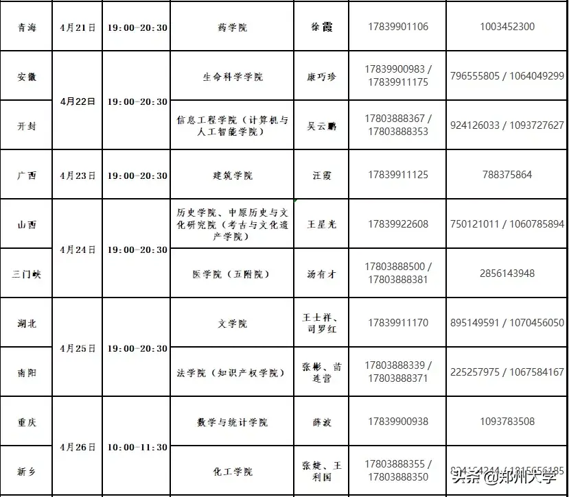 4月7日至5月14日,郑州大学招生办公室隆重推出全国系列线上招生咨询会活动。