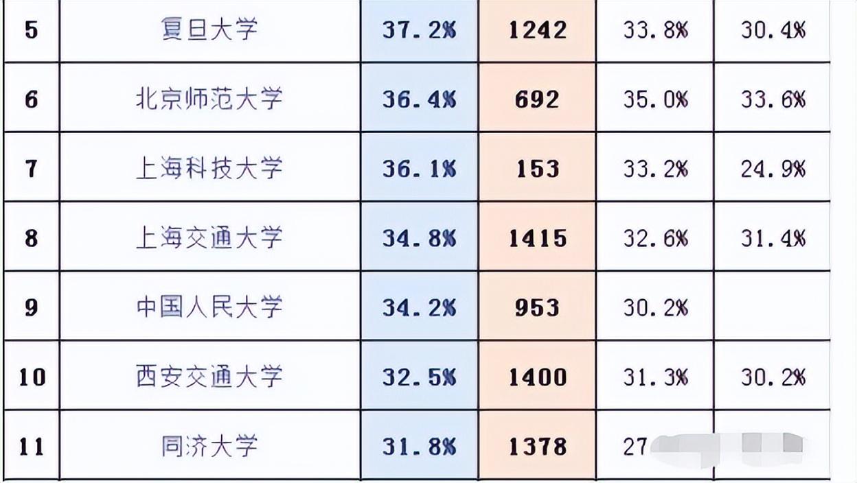 “双一流”中的上海科技大学推免率是很高的,和北师大差不多,甚至比上海交大、人民大学、西安交大和同济大学这类名校的推免率都要高。