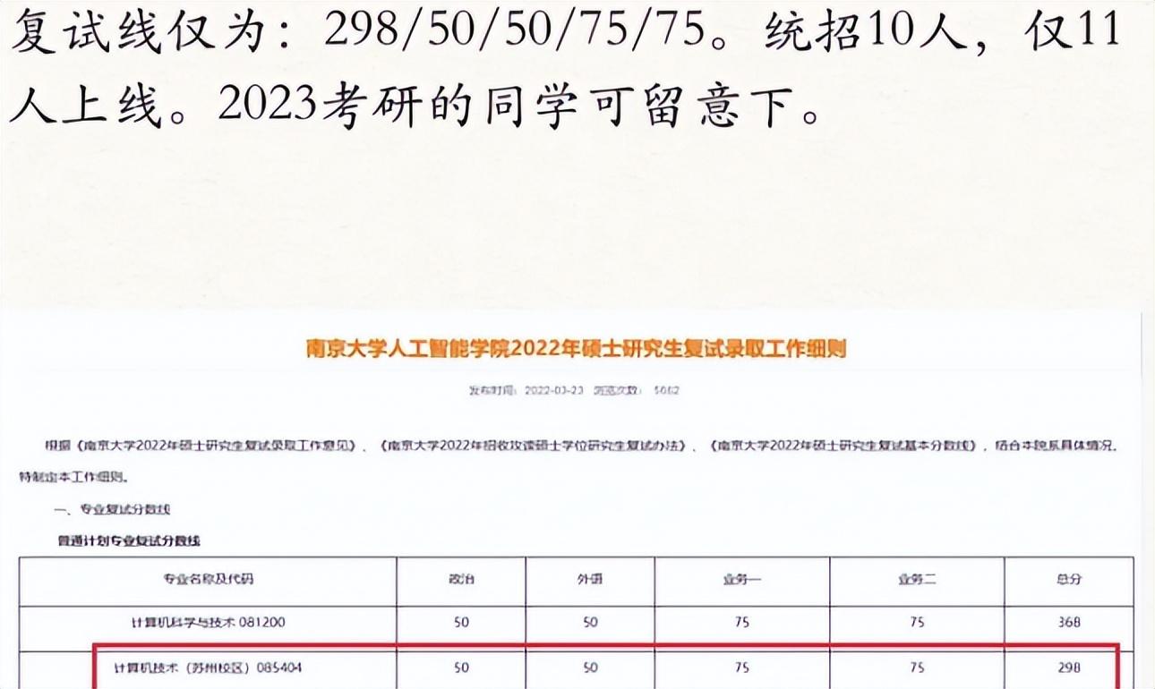 南京大学是考研考生都很熟悉的顶尖名校了,作为名校南京大学也是出现了空缺的情况,南京大学的人工智能学院计算机技术专硕复试线仅为298分