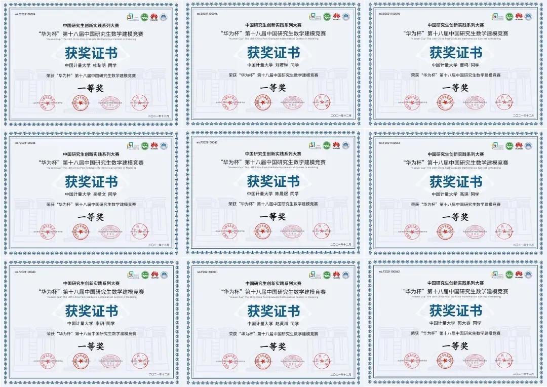 近日,“华为杯”第十八届中国研究生数学建模竞赛成绩揭晓,中国计量大学共选出99支研究生队伍代表学校参赛,再一次实现全国一等奖“满额获奖”(本赛事章程规定每研究生培养单位最多只可获得3项全国一等奖),共有3支队伍获全国一等奖,45支队伍获全国二等奖,24支队伍获全国三等奖,获奖率在所有参赛高校中排名全国第2,高达74.5%,总成绩在参赛的459所高校(研究生培养单位)中排名全国第19,并连续3年获得“优秀组织奖”。