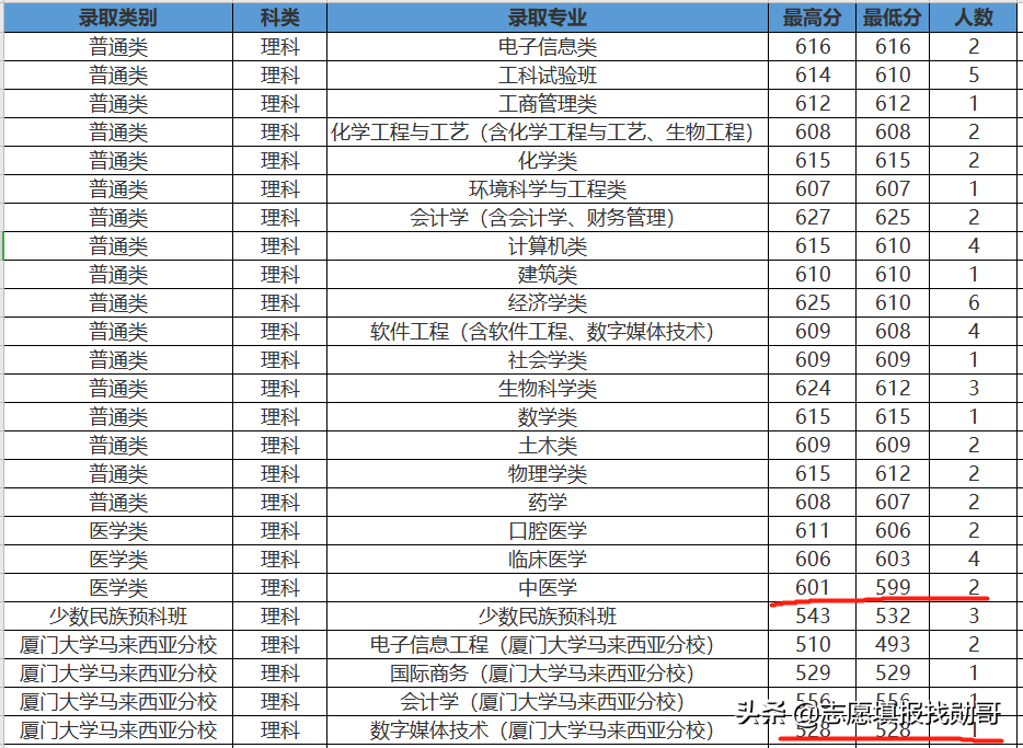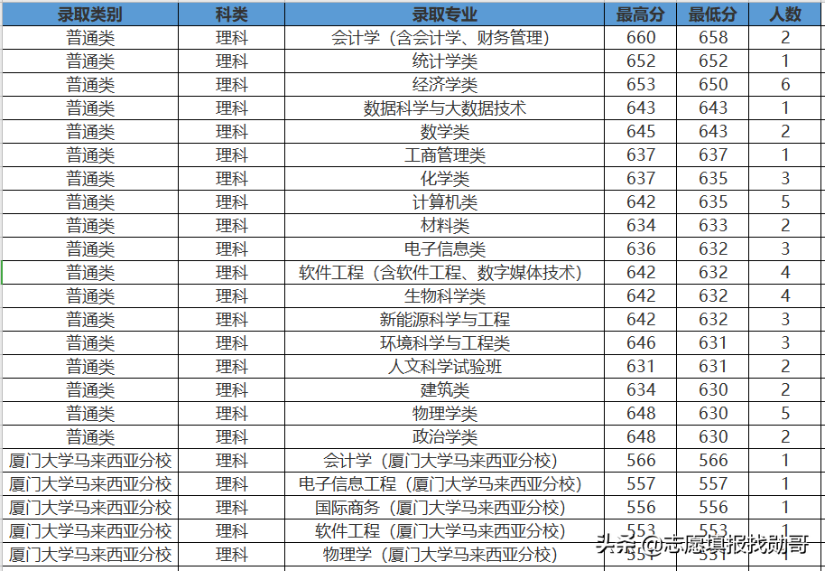 厦大在黑龙江2020年理科录取的普通类专业也比较少,并且没有医学类招生和厦门大学马来西亚分校的招生专业。
